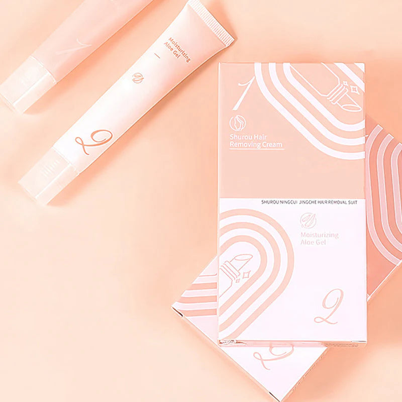 Komplet vsebuje: kremo za odstranjevanje dlak + vlažilni pomirjujoči gel