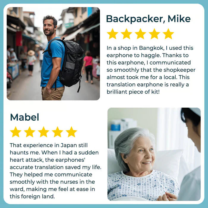 Naše slušalke vam omogočajo enostavno prevajanje in komunikacijo z drugimi v realnem času, tako da preprosto daste eno slušalko partnerju, ki bo prevajala pogovor med vama.