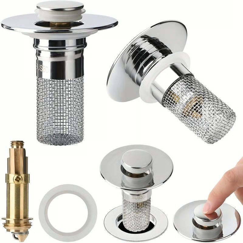【NADGRAJENA OBLIKOVANJE 2 V 1】Cedilo za odtok kopalniškega umivalnika z izvlečnim pokrovom ima v notranjosti košaro proti zamašitvi, ki združuje zamašek in cedilo v enem. Košara proti zamašitvi ujame lase in druge ostanke ter jim preprečuje vstop v odtok. To pomaga vzdrževati učinkovito odtekanje in preprečuje težave z zamašitvijo.