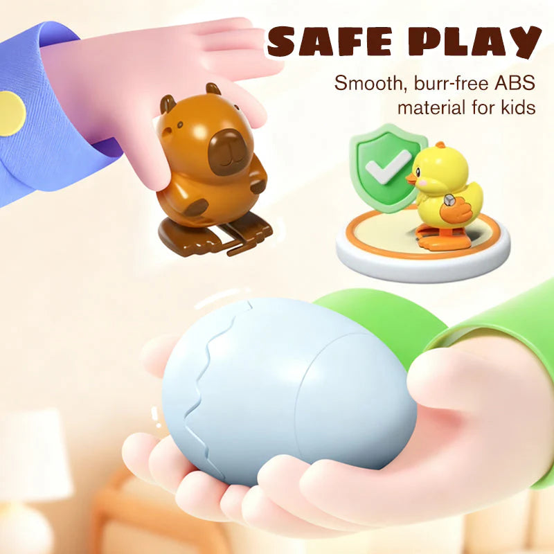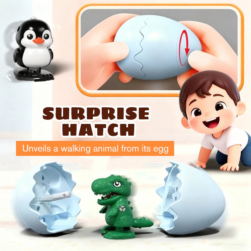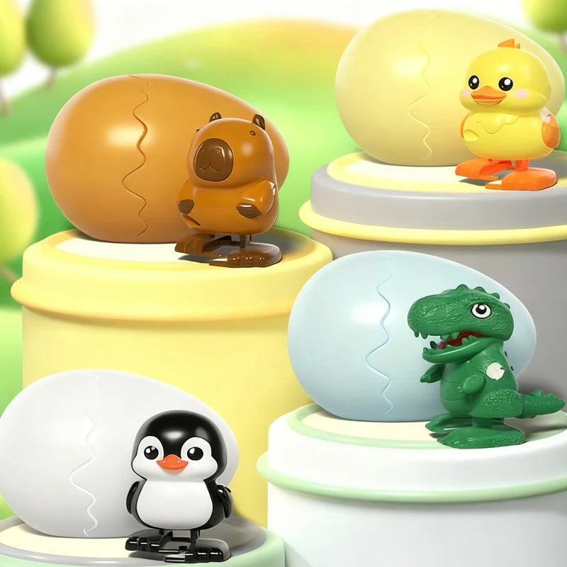 MEHANIZEM ZA PRESENEČENJE IZVALITVE: Sodelujte v poglobljeni igralni izkušnji. Zasukajte konico jajca, ga odložite in v trenutku se bo lupina samodejno odprla. To gibanje razkrije očarljivo žival na navijanje, pripravljeno, da se pojavi. Ta interaktivni proces otroka napolni s pričakovanjem in veseljem ter ustvari nov, vznemirljiv čas za igro.