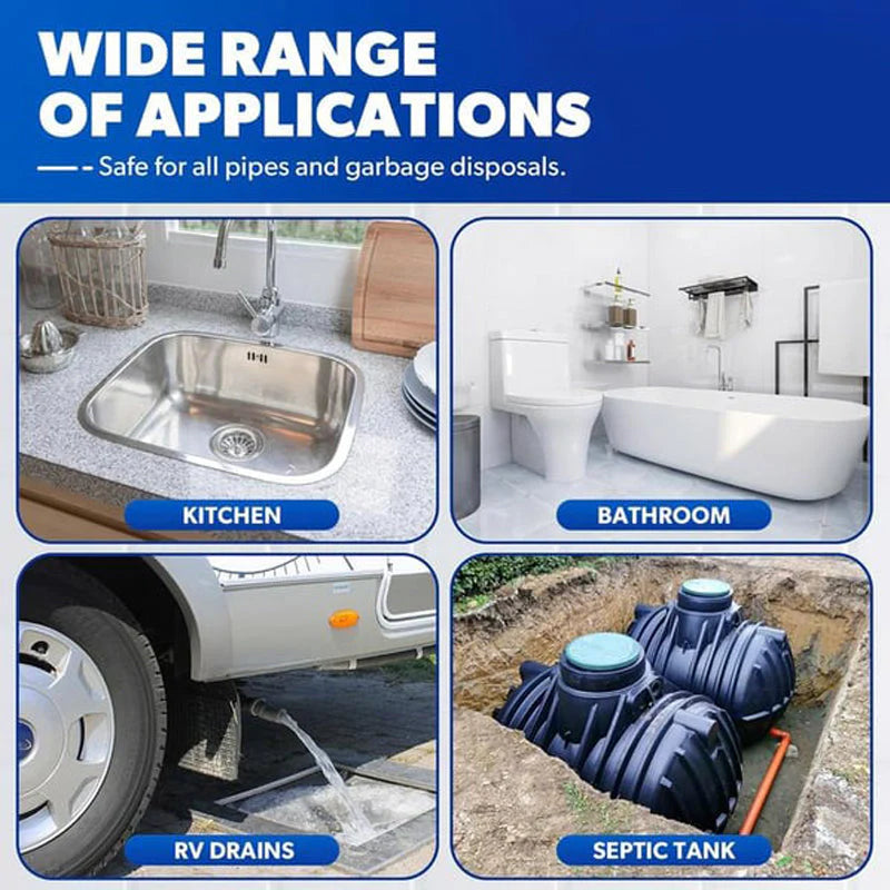 PRIMERNO ZA RAZLIČNE CEVI – Ta gel varno deluje s PVC, plastičnimi in drugimi običajnimi gospodinjskimi cevmi ter zagotavlja zanesljivo čiščenje, ne da bi pri tem poškodoval materiale. Idealen je za kuhinje, kopalnice, pralnice in pomožne prostore, saj se lahko spopade z vsakodnevnimi zamašitvami, ki jih povzročajo lasje, maščoba, milne usedline in ostanki hrane.