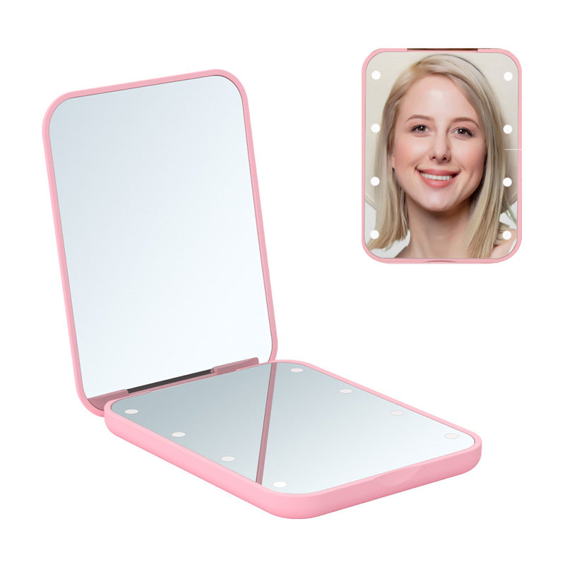 Poslovite se od slabe osvetlitve! To mini ogledalo je opremljeno z 8 LED žarnicami, ki zagotavljajo močno in enakomerno osvetlitev ter vam pomagajo doseči popoln videz ličil tudi v najtemnejših kotičkih.