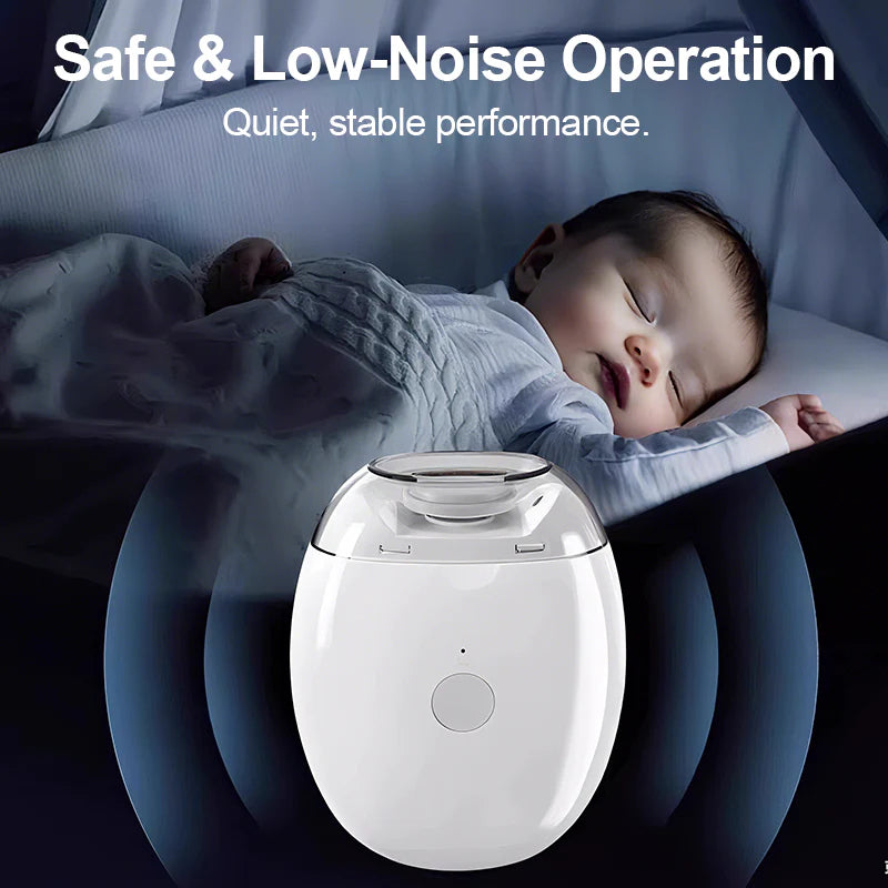 Deluje tiho in enakomerno ter ustvarja minimalen hrup. Ne poškoduje nohtov ali kože, gladko, zaobljeno ohišje pa preprečuje praske, kar zagotavlja varno in udobno uporabo – tudi za dojenčke.