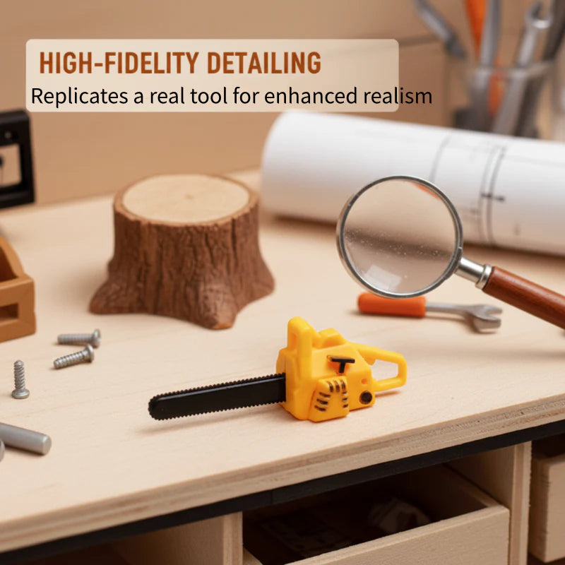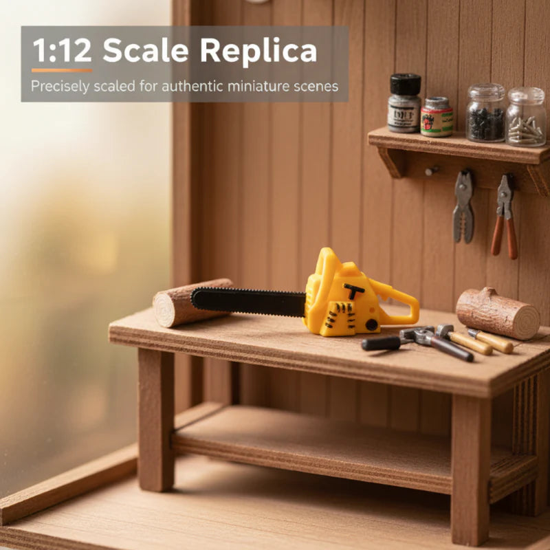 REPLIKA V MERILU 1:12 - Ta miniaturna motorna žaga, zasnovana tako, da popolnoma dopolnjuje zbirko v merilu 1:12, se brezhibno prilega vsakemu zunanjemu ali garažnemu prizoru, saj ohranja natančna razmerja za pristen in dosleden videz.