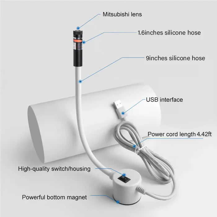 PRIMERNO ZA VSE ŠIVALNE STROJE: Ima magnet, ki vodi laser, kar omogoča enostavno pritrditev in odstranitev s šivalnih strojev, overlockov in vezilnih strojev. Prilagodljiva roka vam omogoča, da laser postavite kamor koli.