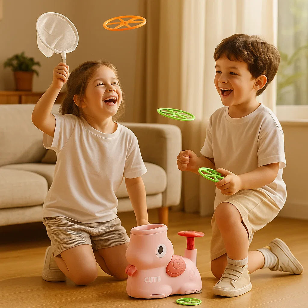Čudovit izstreljevalec diskov Slon, ki je na voljo v roza in zeleni barvi, zagotavlja smeh in aktivno igro vsak dan! Samo vstavite barvit disk in pritisnite gumb, slon pa ga bo z veseljem izstrelil v zrak. Otroci razvijajo koordinacijo, reflekse in potrpežljivost, medtem ko se igrajo sami ali s prijatelji – v zaprtih prostorih ali na prostem.