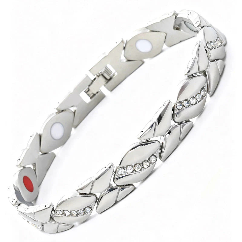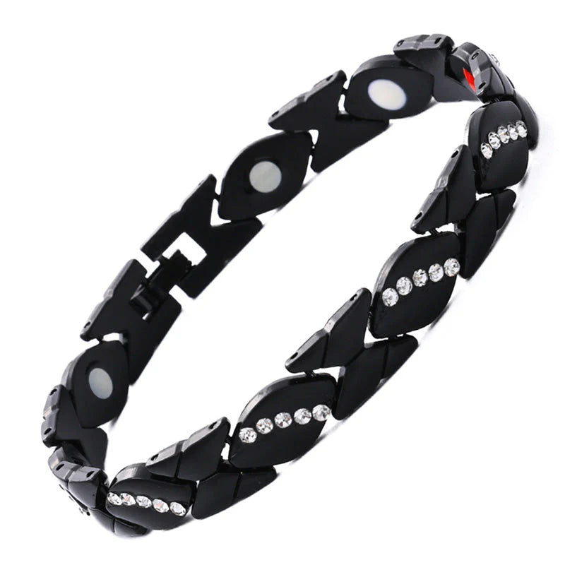 VGRADENI MAGNETI – Vsak člen verižice ima vgrajene močne magnete, ki spodbujajo občutek ravnovesja in dobrega počutja med nošenjem tega čudovitega kosa nakita, ki brezhibno združuje funkcionalnost in modo.