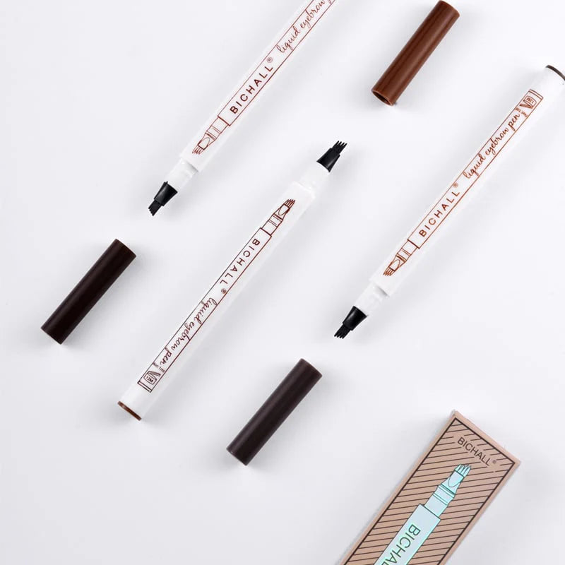 Tekoči svinčnik za obrvi ima 4 konice z ozkim, tankim obrisom in izjemno vzdržljivo teksturo, ki omogoča enostavno in hitro risanje naravnih in ukoreninjenih obrvi.