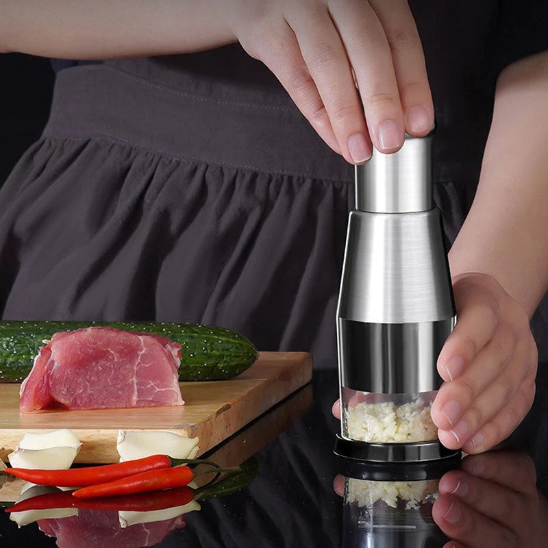 Naš izdelek je enostaven in hiter za uporabo. Vse, kar morate storiti, je, da stroke česna vstavite v prozorno škatlo, nato pritrdite ohišje in posodo mlinčka ter nekajkrat pritisnete, da se sestavine sesekljajo in hitro dokončate izdelek! Če ne želite zapraviti veliko časa in truda s pripravo sestavin, potem potrebujete naš izdelek.